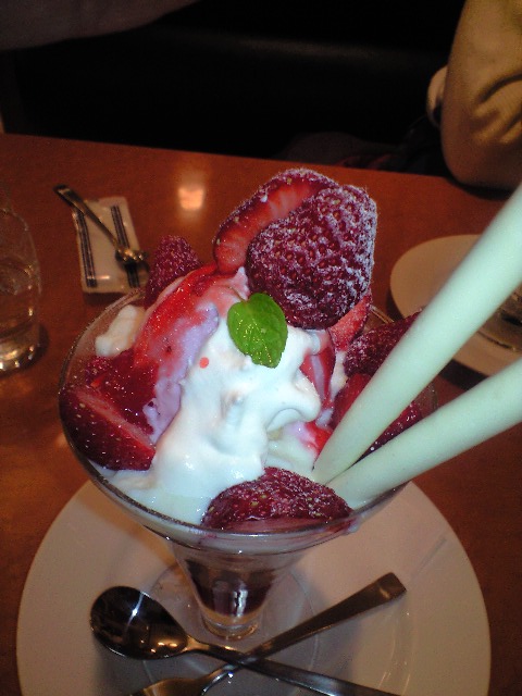 パフェなんぞをいただいてみたww ええ歳したオッサンがイチゴパフェ(爆) 結構美味かった♪ 相棒は チョコ風味(^。^) う~ん。。。チョコ味はちょっと苦手かな~(・・;) 普通にチョコレートは好きなんやけどね~(-。-)y-゜゜゜
